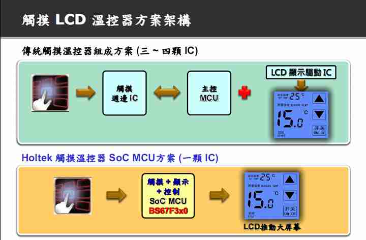 1.将触摸IC,主控MCU,LCD液晶驱动IC整合为一体